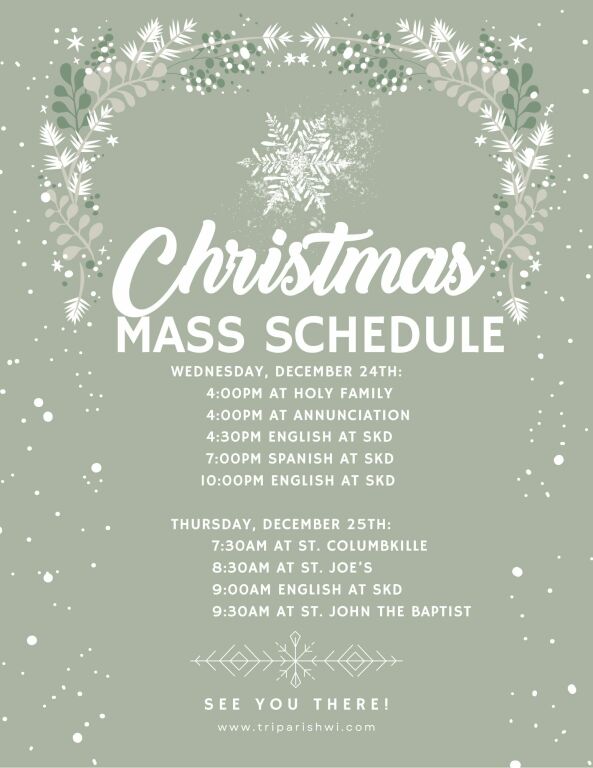 Click here to view a complete schedule for the Western Dodge County Catholic Churches.